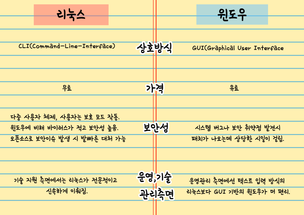 저는 리눅스를 공부하면서 리눅스와 윈도우의 차이점도 궁금하더라구요!