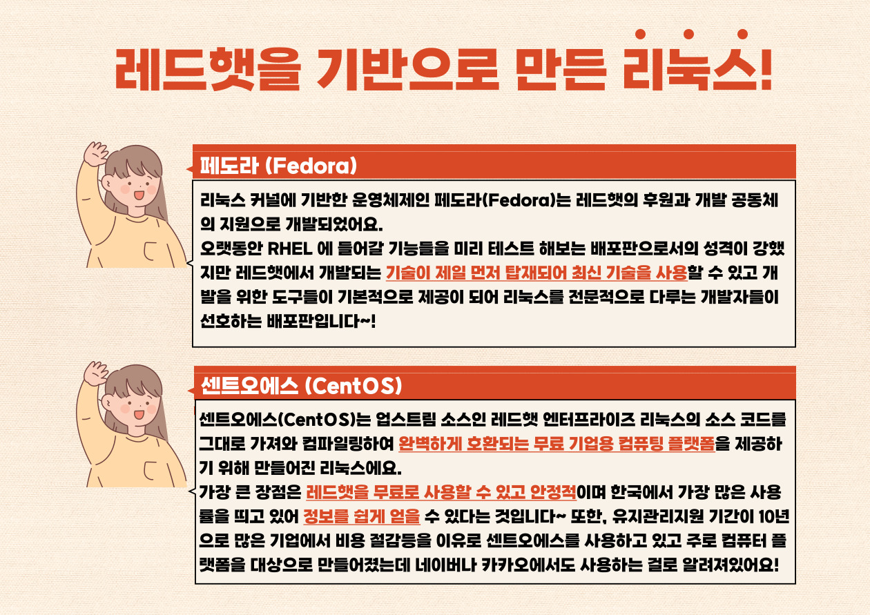 다음은 레드햇을 기반으로 만든 리눅스 2가지 페도라와 센트오에스 특징을 간단히 알려드릴게요 ㅎㅎ
