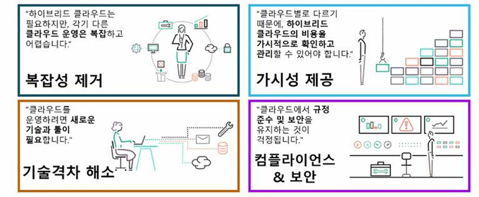 위와 같이 고객들은 클라우드 도입 전, 새로운 기술에 대한 인력, 관리 및 운영이 고민이라고 말합니다.