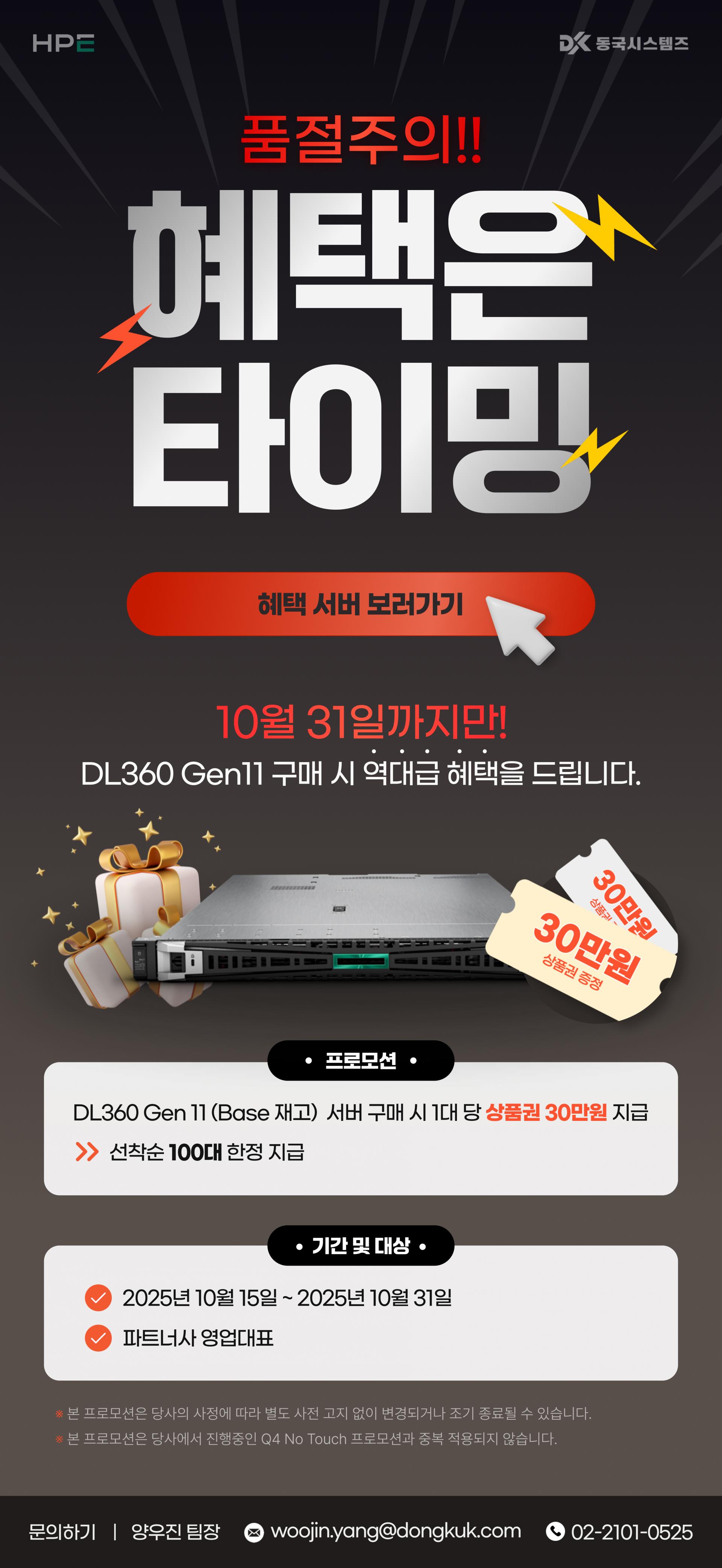 [기간한정] DL360Gen11 구매 하시고 30만원 상품권 받아가세요.💸